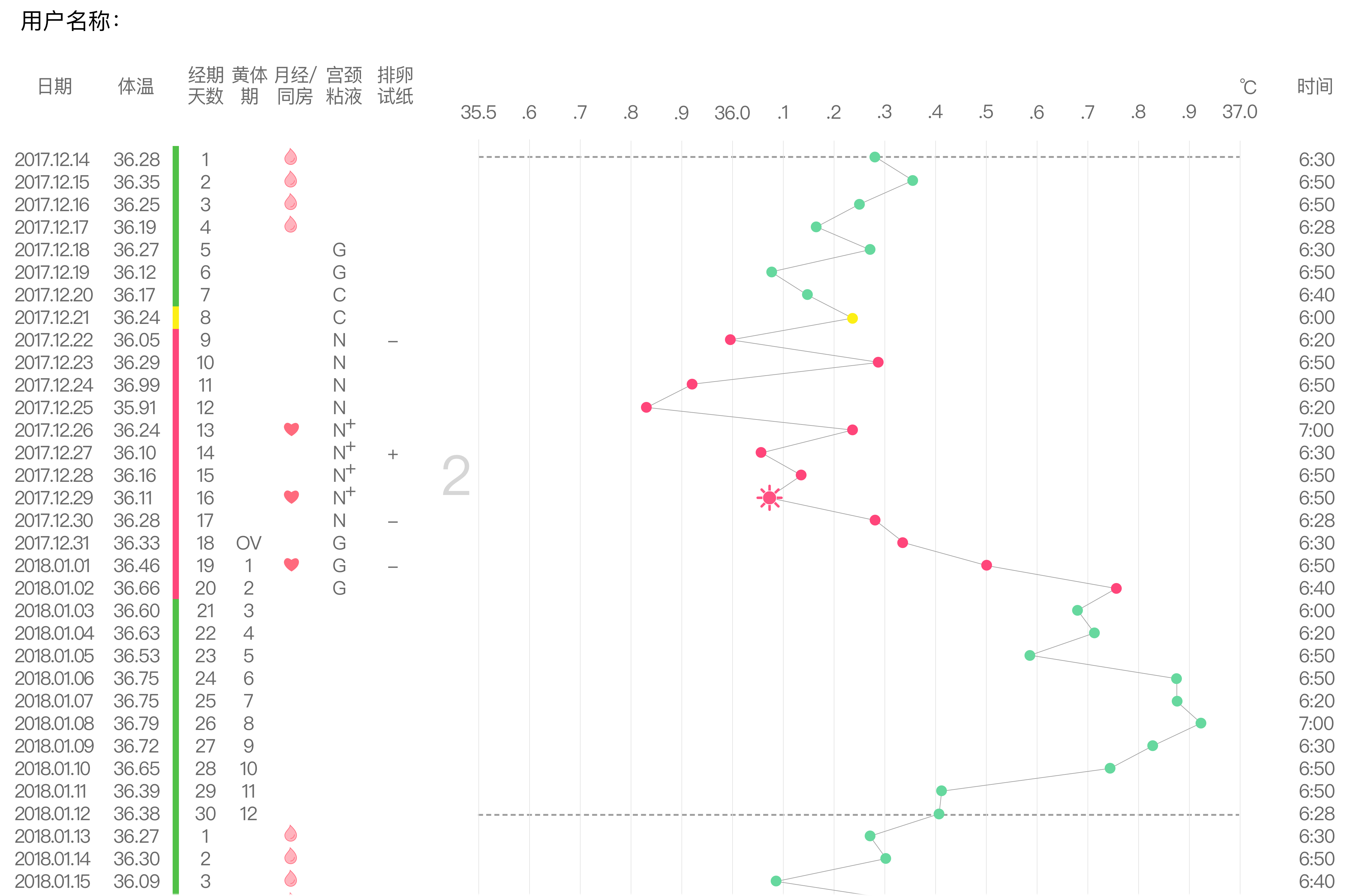 可以一目了然地分析排卵时间、排卵功能、有效同房、 黄体功能等重要备孕信息